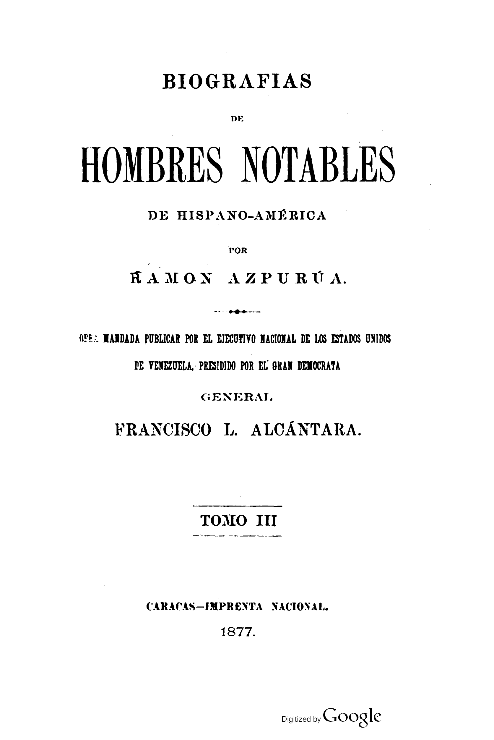 Biografias de hombres notables de Hispanoamérica, tomo III