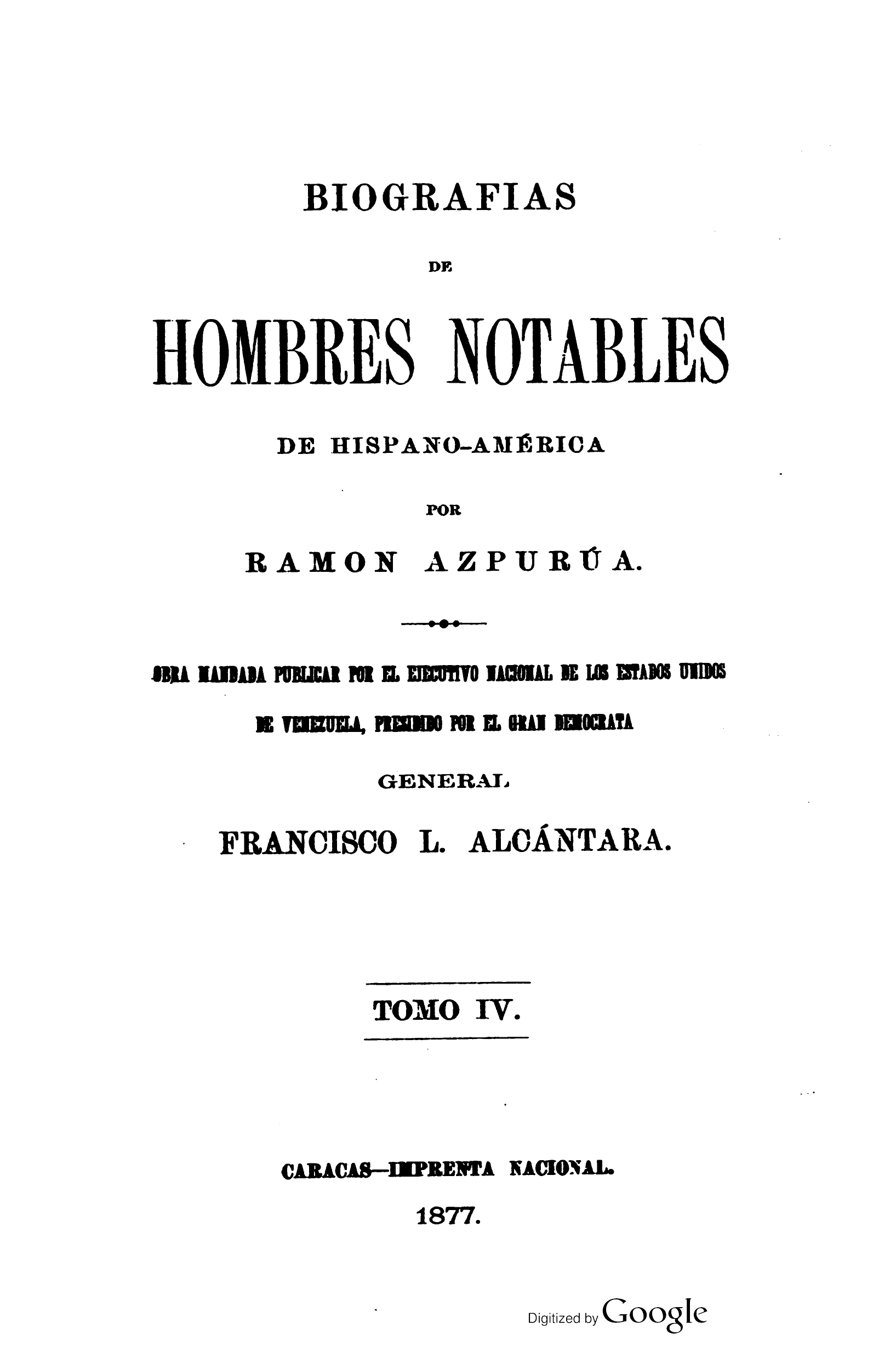 Biografías de hombres notables de Hispanoamérica, tomo IV
