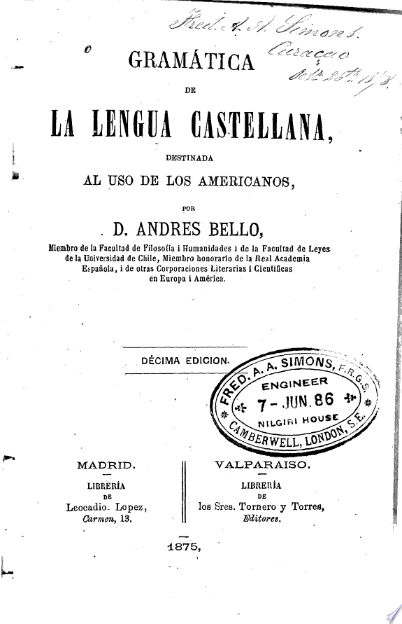 Gramática de la lengua castellana, destinada al uso de los americanos. Décima edición.
